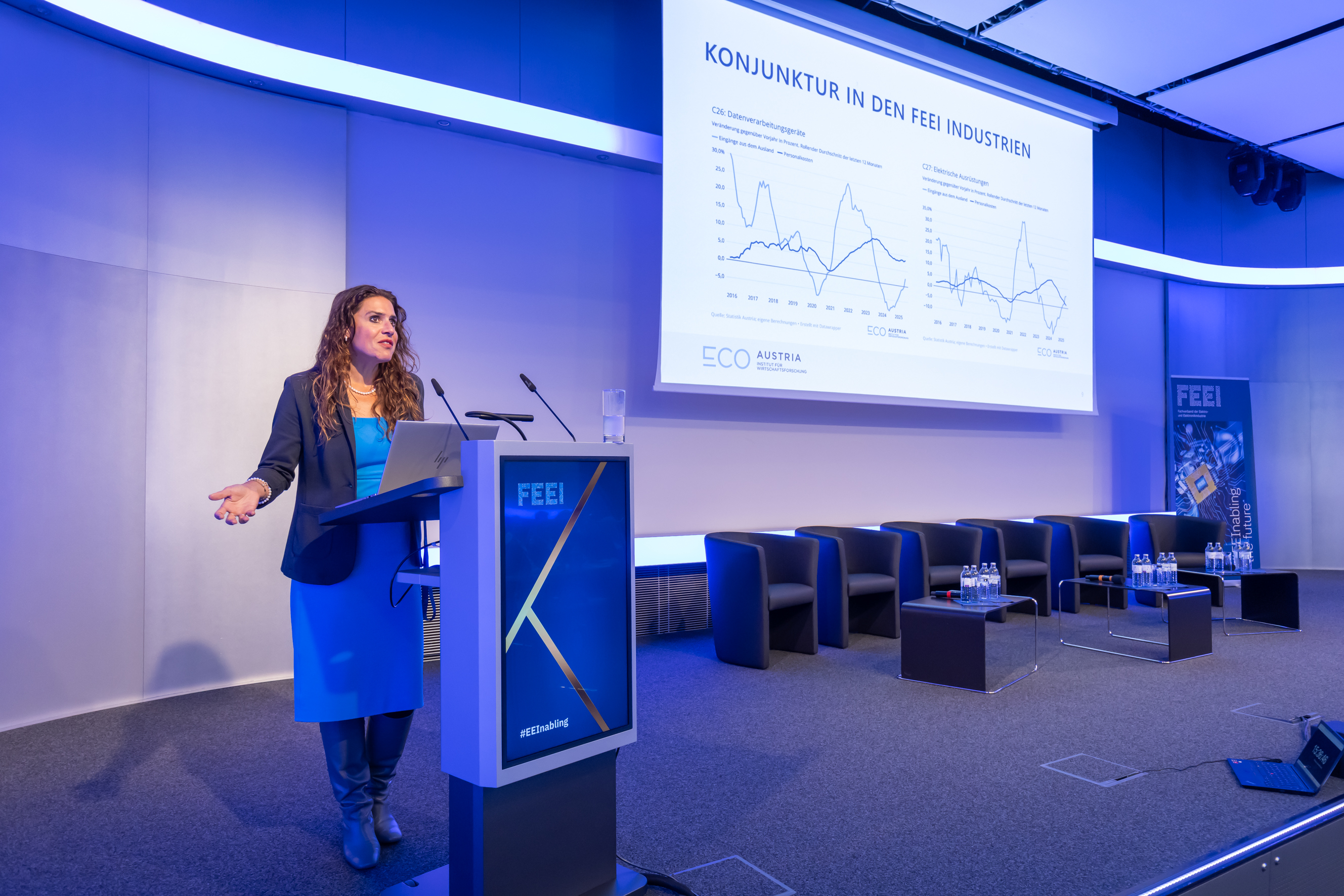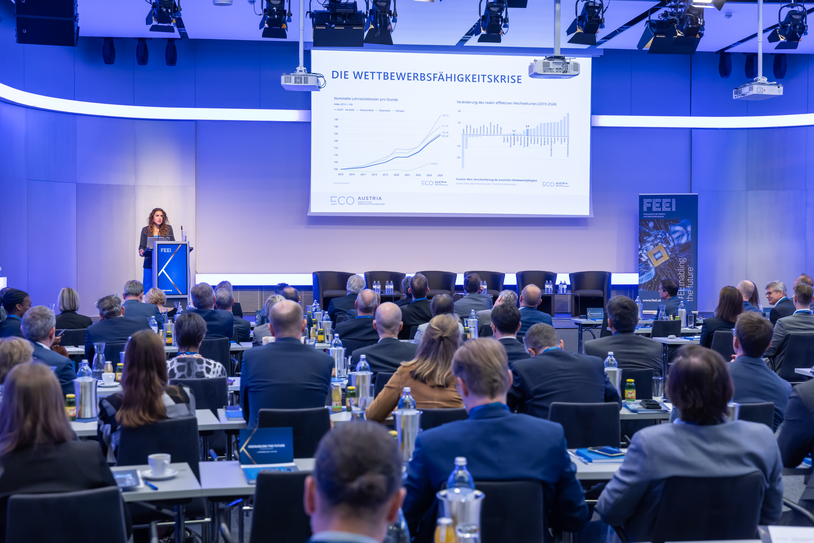 Unter dem Motto „EEInabling the Future“ veranstaltete der Fachverband der Elektro- und Elektronikindustrie (FEEI) in der Wirtschaftskammer Österreich ein Branchenevent mit rund 120 Vertreter:innen aus Wirtschaft, Politik und Wissenschaft. Im Mittelpunkt standen aktuelle Entwicklungen, Herausforderungen und Zukunftsperspektiven der Elektro- und Elektronikindustrie in Europa. Neben Keynotes und Diskussionsrunden bot die Veranstaltung Gelegenheit zum Austausch und zur Vernetzung der Branche.