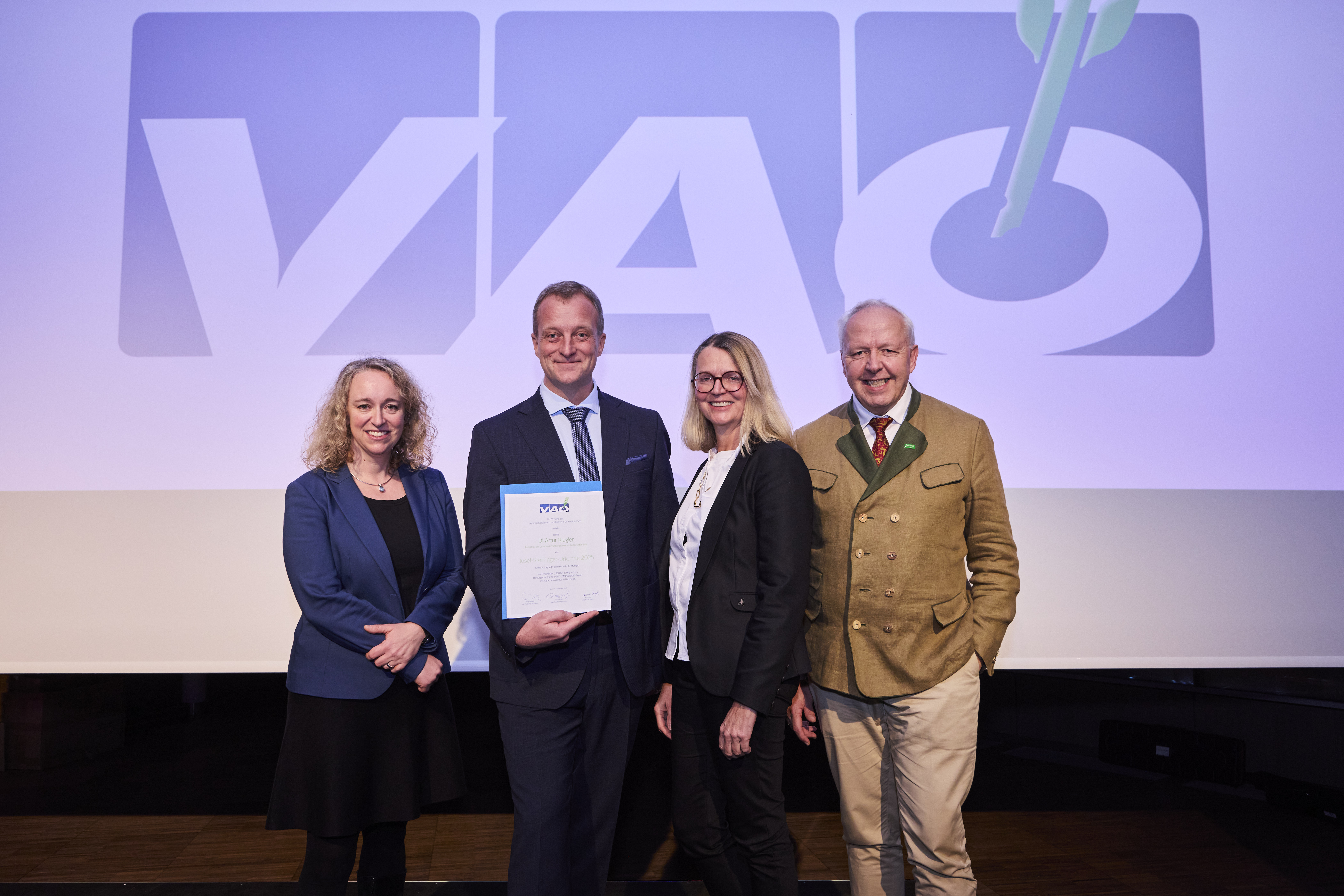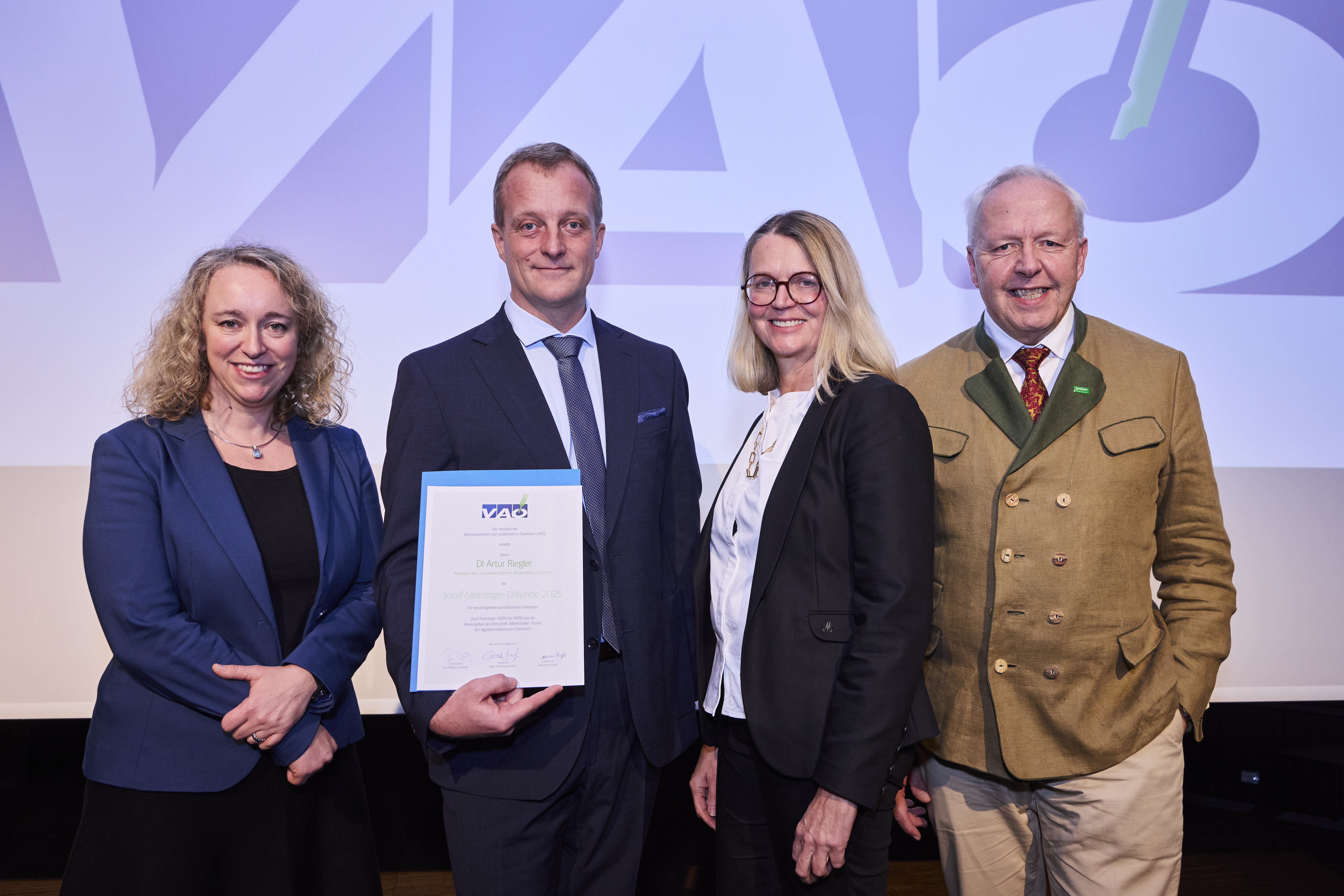 Der Verband der Agrarjournalisten und -publizisten (VAÖ) verlieh seine Auszeichnungen. Mit dem Eduard-Hartmann-Preis wurden Alexander Zens (OÖN) und Bernhard Ammann („Unser Ländle“) geehrt, Elisabeth Hell und Artur Riegler erhielten Josef-Steininger-Urkunden. Zahlreiche Gäste aus Politik, Medien und Agrarbranche waren vor Ort.