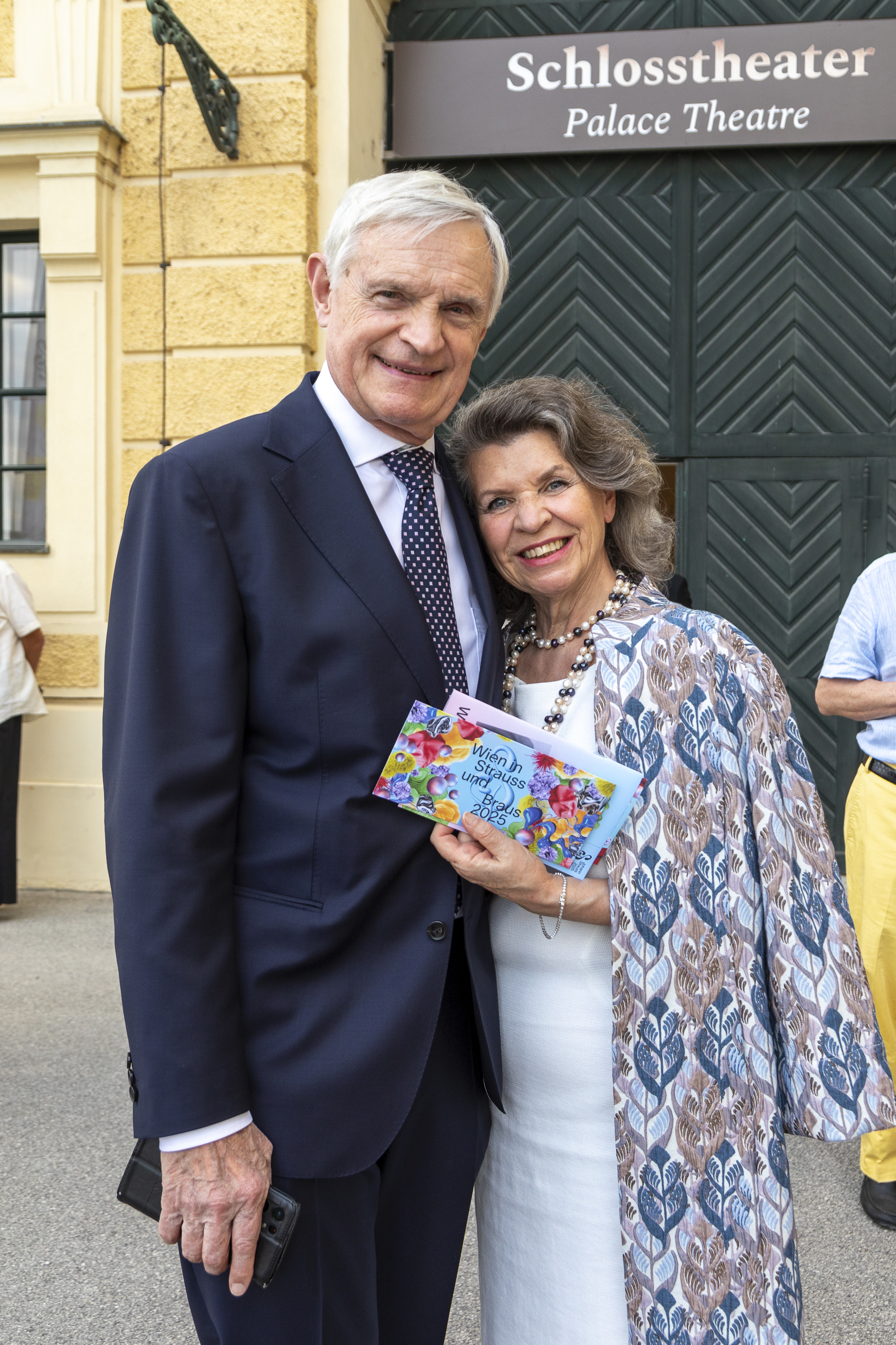 Im Rahmen des Johann-Strauss-Festjahres 2025 feierte am Sonntag im Schlosstheater Schönbrunn die Operette „Wiener Blut“ Premiere. Zu den Premierengästen zählten unter anderem Birgit Sarata, Eduard Strauss (Ur-Ur-Enkel von Johann Strauss), Thomas Schäfer-Elmayr mit Christine Zach, Purzl und Inge Klingohr, Intendant Roland Geyer, Schönbrunn-Geschäftsführer Klaus Panholzer, Künstler Franz-Josef Baur sowie Konstantin Schenk mit Tamara Trojani.