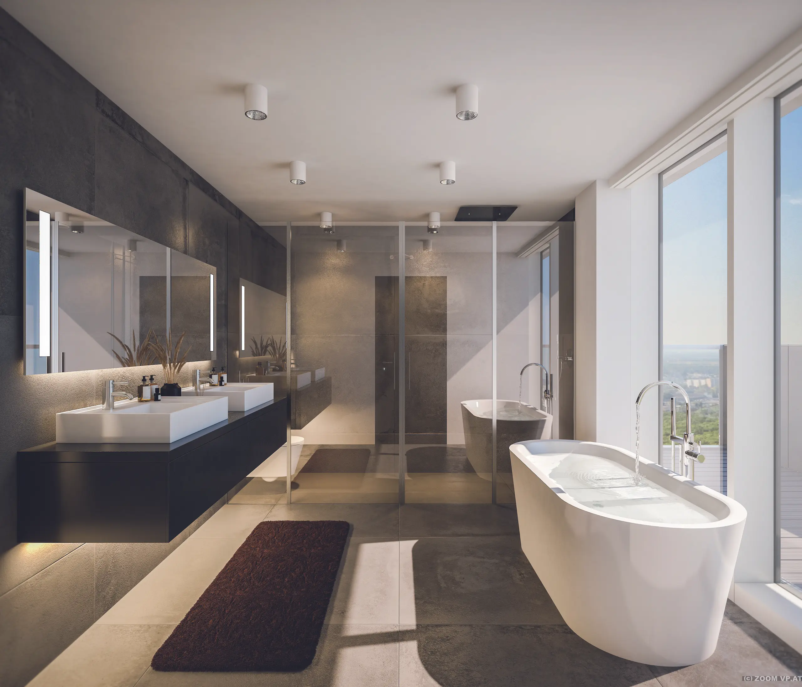 © Zoom VPWenig imperialen Glanz, dafür viel Glas in luftiger Höhe bieten die sechs bis zu 300 Quadratmeter großen Penthouses, die derzeit in den Etagen 39 bis 41 in 139 Meten Höhe im Marina Tower am Donauufer errichtet werden. Mit einem Verkaufspreis ab 2,5 Millionen Euro spielen sie preislich in einer anderen Liga. Und auch was die Lage betrifft, rümpft der ein oder andere Luxusmakler schon mal die Nase. Andererseits: Höher als hier lässt sich kein Ausblick von einer Penthouse-Terrasse genießen. Und Geschmäcker sind ja bekanntlich verschieden ...